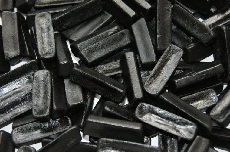 Suiker, Glucosestroop, Maltodextrine, Zetmeel, Gelatine,Ammonium Chloride, Zoethoutextract, Arabische Gom, Aroma,Kleurstof: E153, Plantaardige Olie (Kokos), Glansmiddel:Carnaubawas.